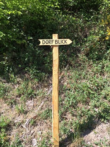 Schilder mit dem Schriftzug „Dorfblick“ hinzugekommen. Folgt man der Beschilderung,