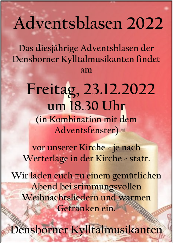Adventsblasen des Musikvereins am 23.12.2022 an der Kirche, herzliche Einladung!